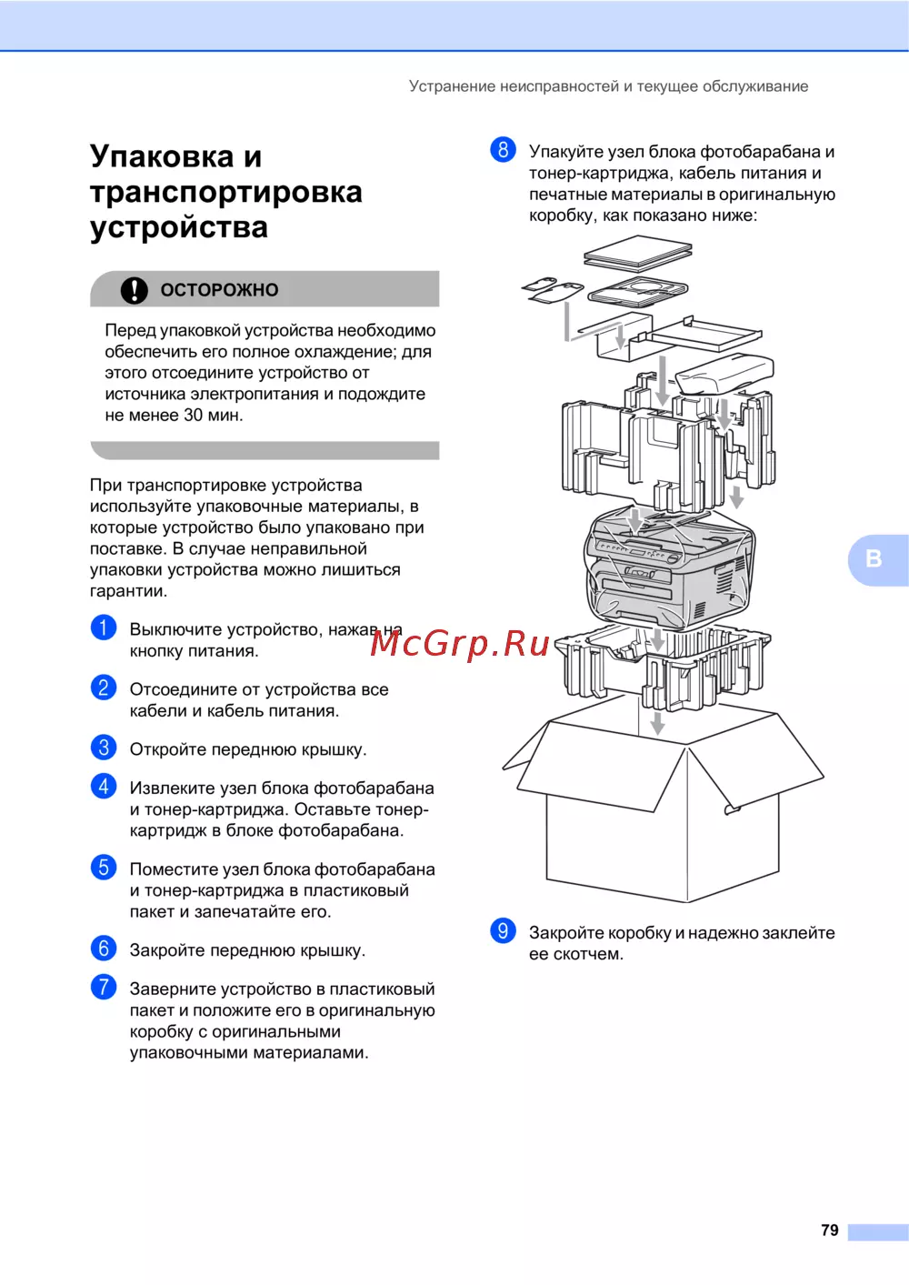![Brother DCP-7030R [85/107] Упаковка и транспортировка устройства](/views2/1027018/page85/bg55.png)