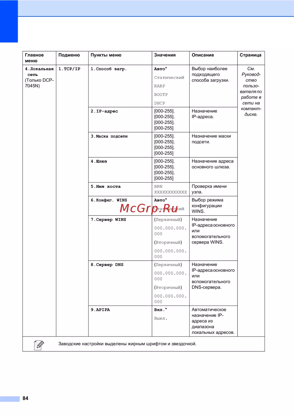 - Проводная сеть ethernet tолько dcp 7045n p.102