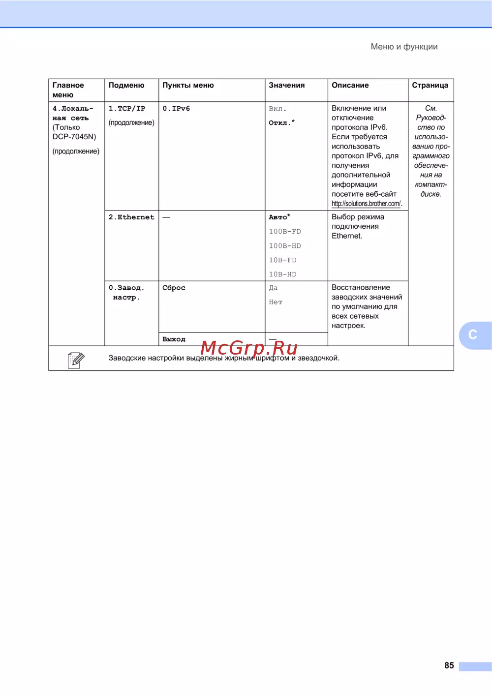 Brother DCP-7030R — настройки локальной сети и протокола IPv6 для устройств [91/107]