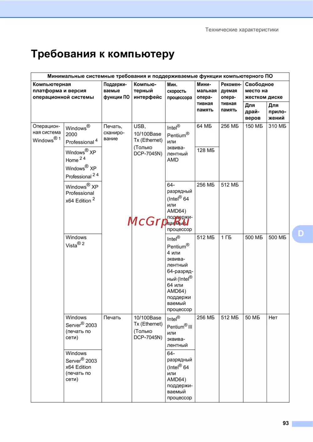 Brother DCP-7030R [99/107] Требования к компьютеру