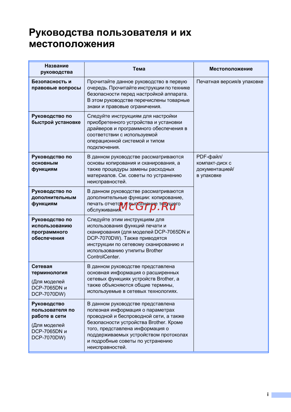 ![Brother DCP-7070DWR [3/124] Руководства пользователя и их местоположения](/views2/1027037/page3/bg3.png)