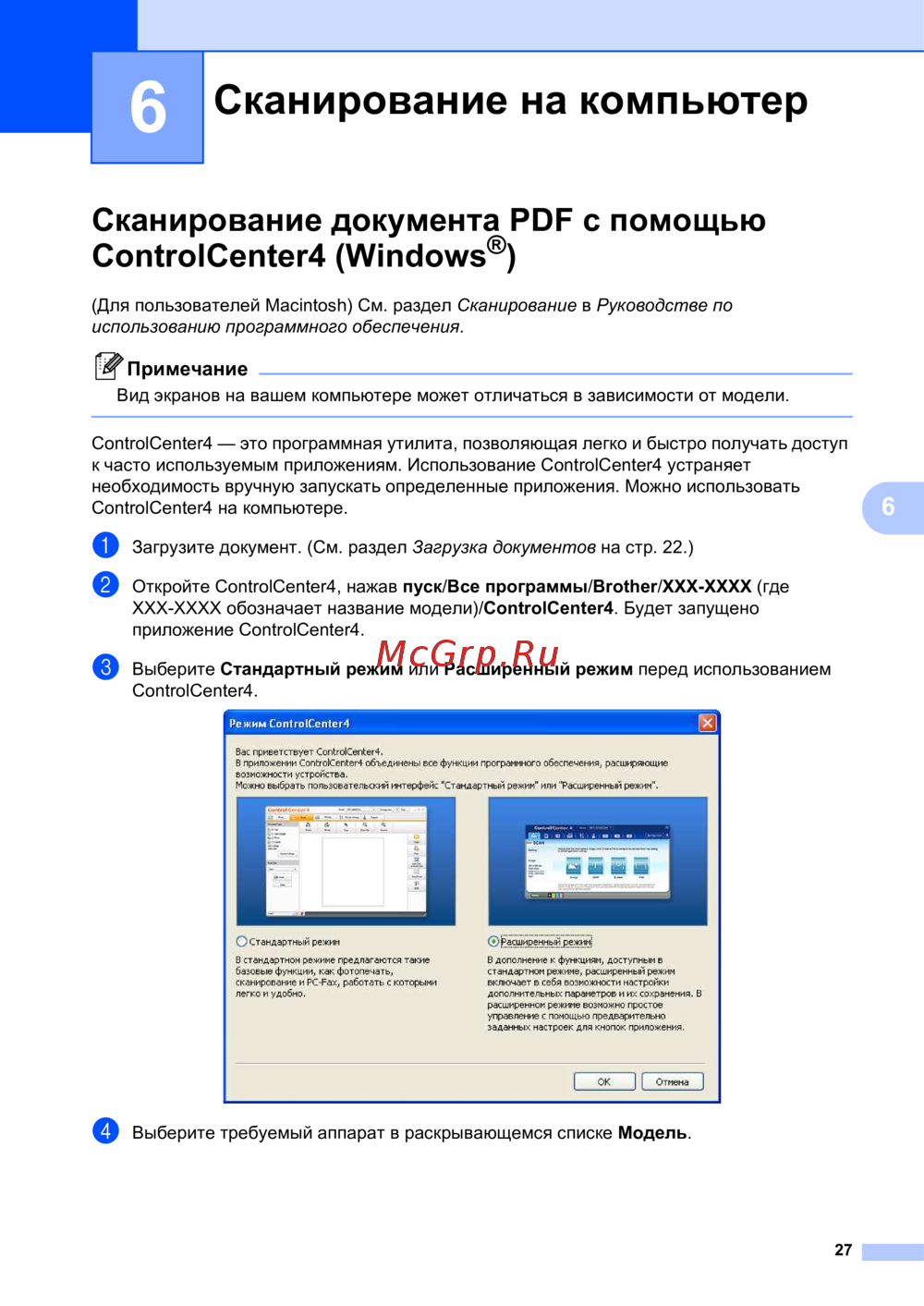 XXX-XXXX обозначает название модели)/ControlCenter4. Будет запущено