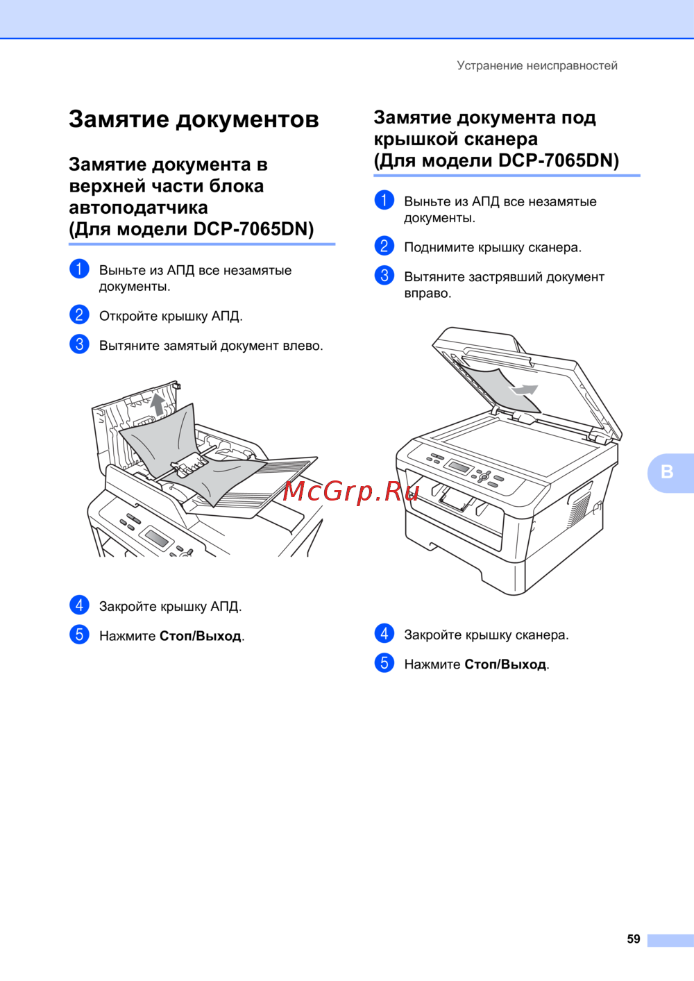 - Замятие документа в выходном лотке для модели dcp 7065dn p.68