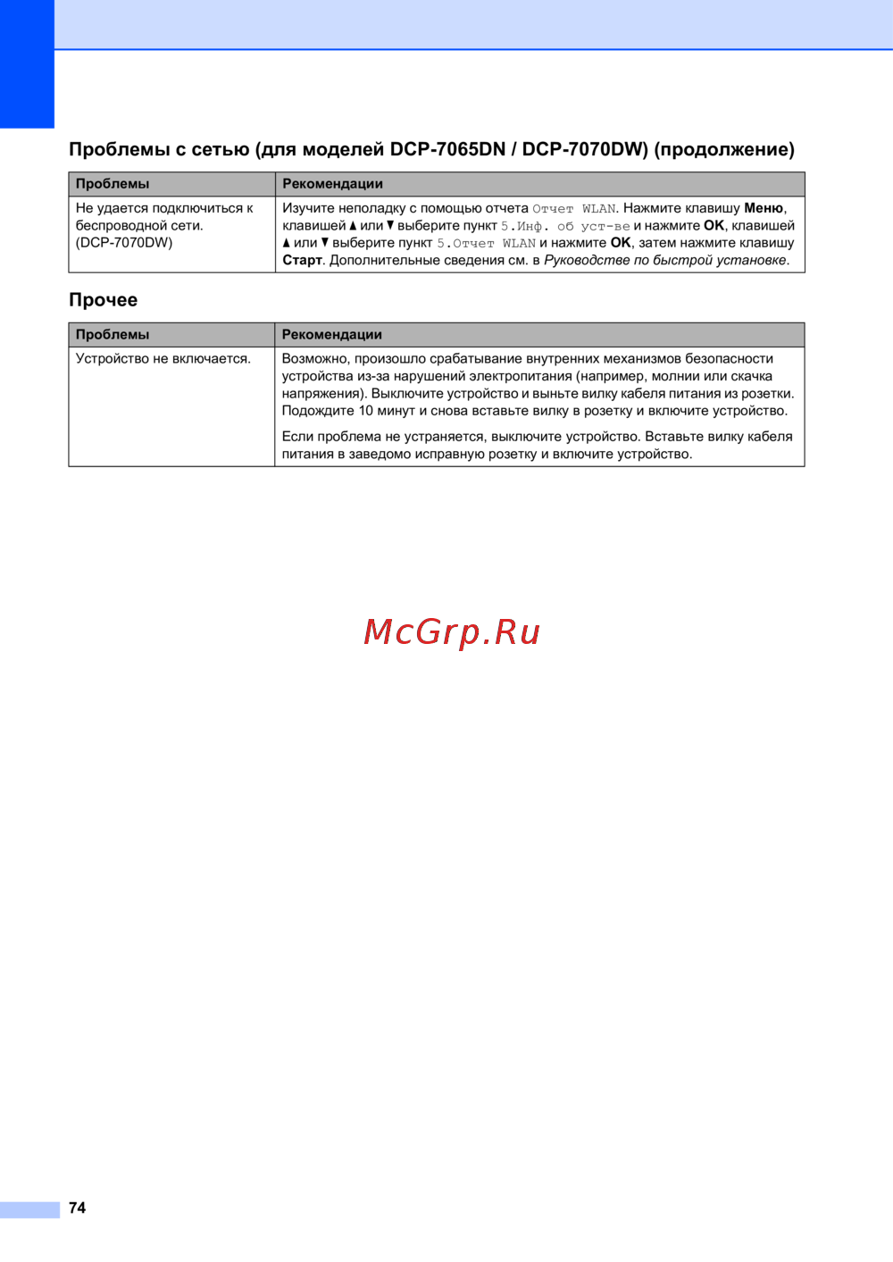 - Проблемы с сетью для моделей dcp 7065dn dcp 7070dw p.81