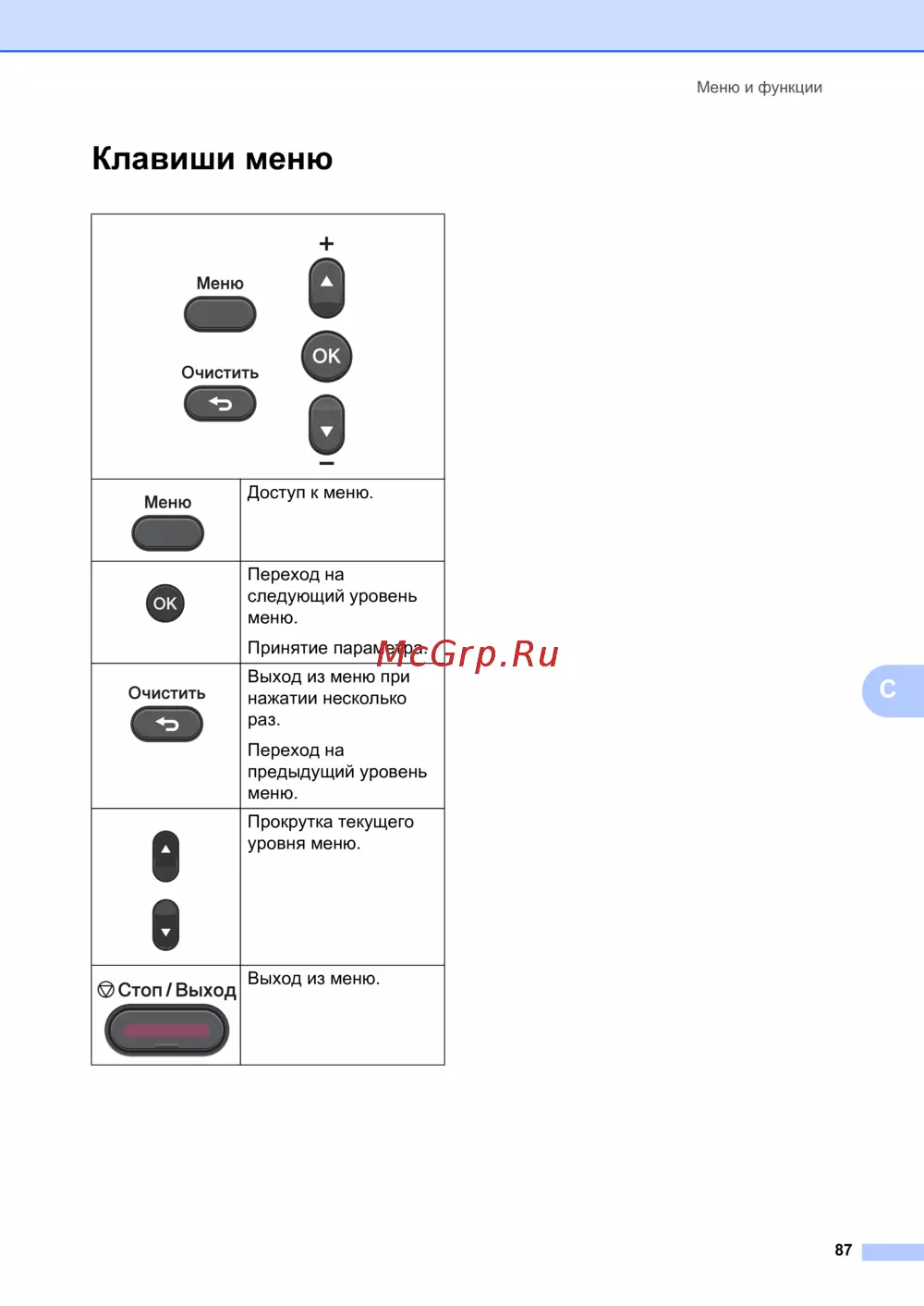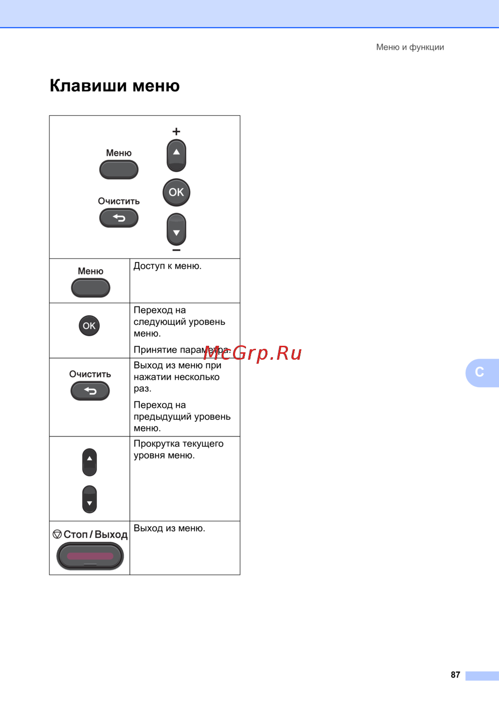 ![Brother DCP-7057WR [95/124] Клавиши меню](/views2/1027037/page95/bg5f.png)