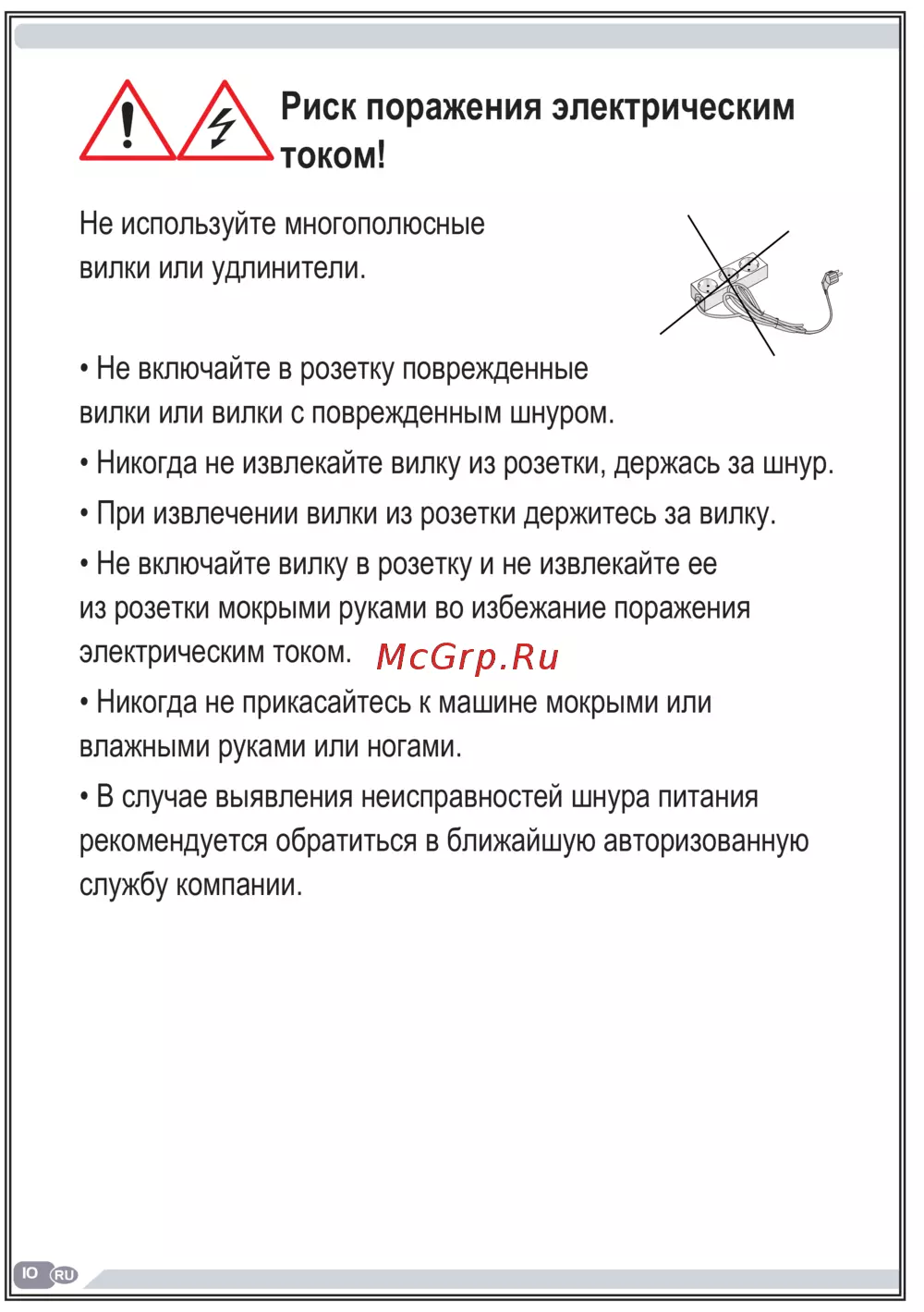 - Риск поражения электрическим током p.10