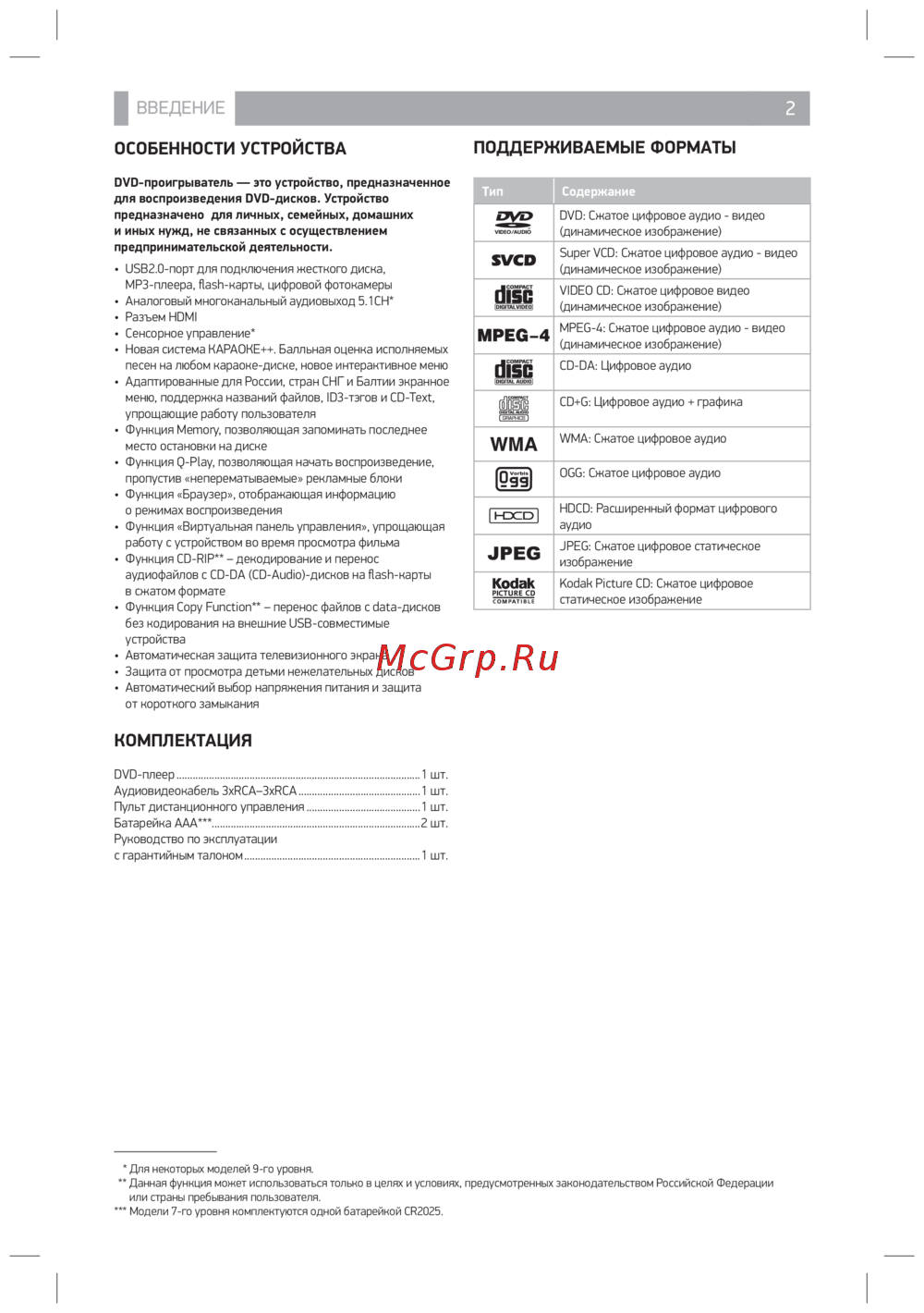 Узнайте о ключевых особенностях DVD-проигрывателя, включая поддержку форматов, функции управления и подключения. Идеально для домашнего использования.
