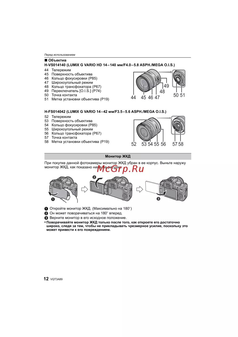 Panasonic Lumix DMC-GH2H Kit Black — инструкция по использованию объектива и ЖКД монитора [12/200]