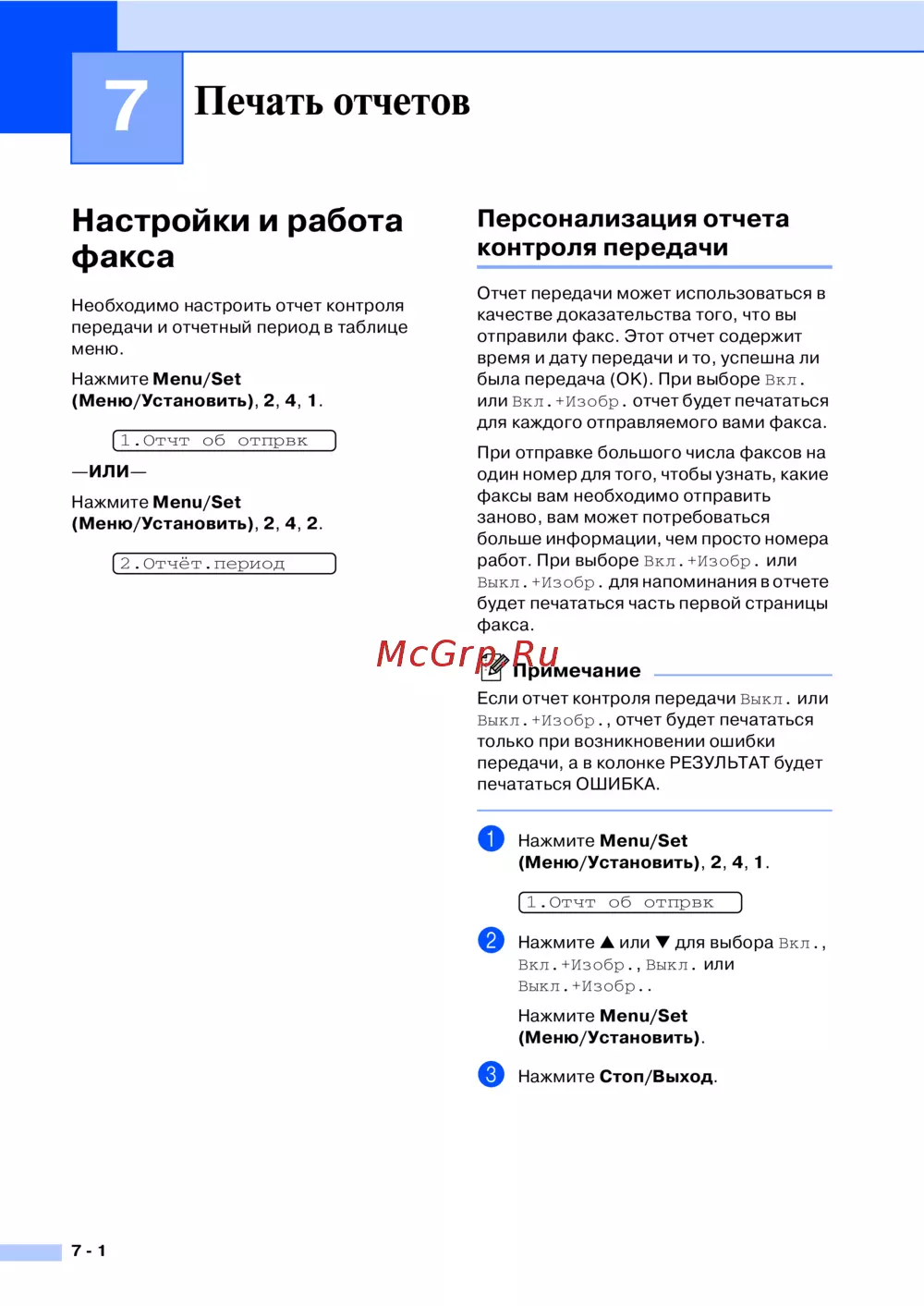 Brother FAX-2825R — настройки и работа факса: управление отчетами и передачами [69/147]