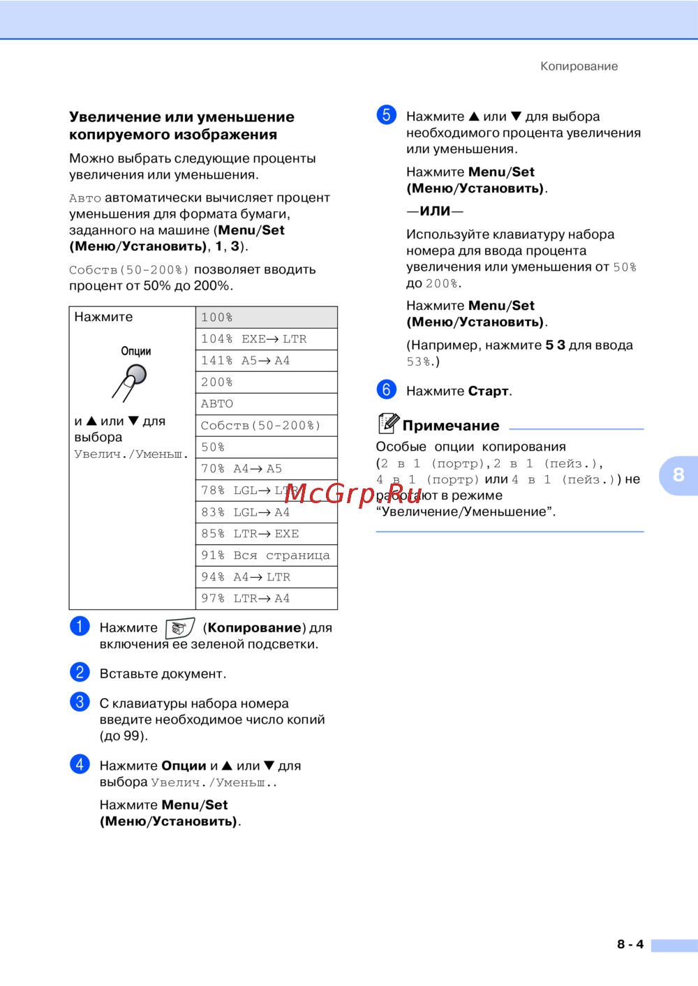 Brother FAX-2825R — инструкция по копированию: увеличение и уменьшение изображений [74/147]