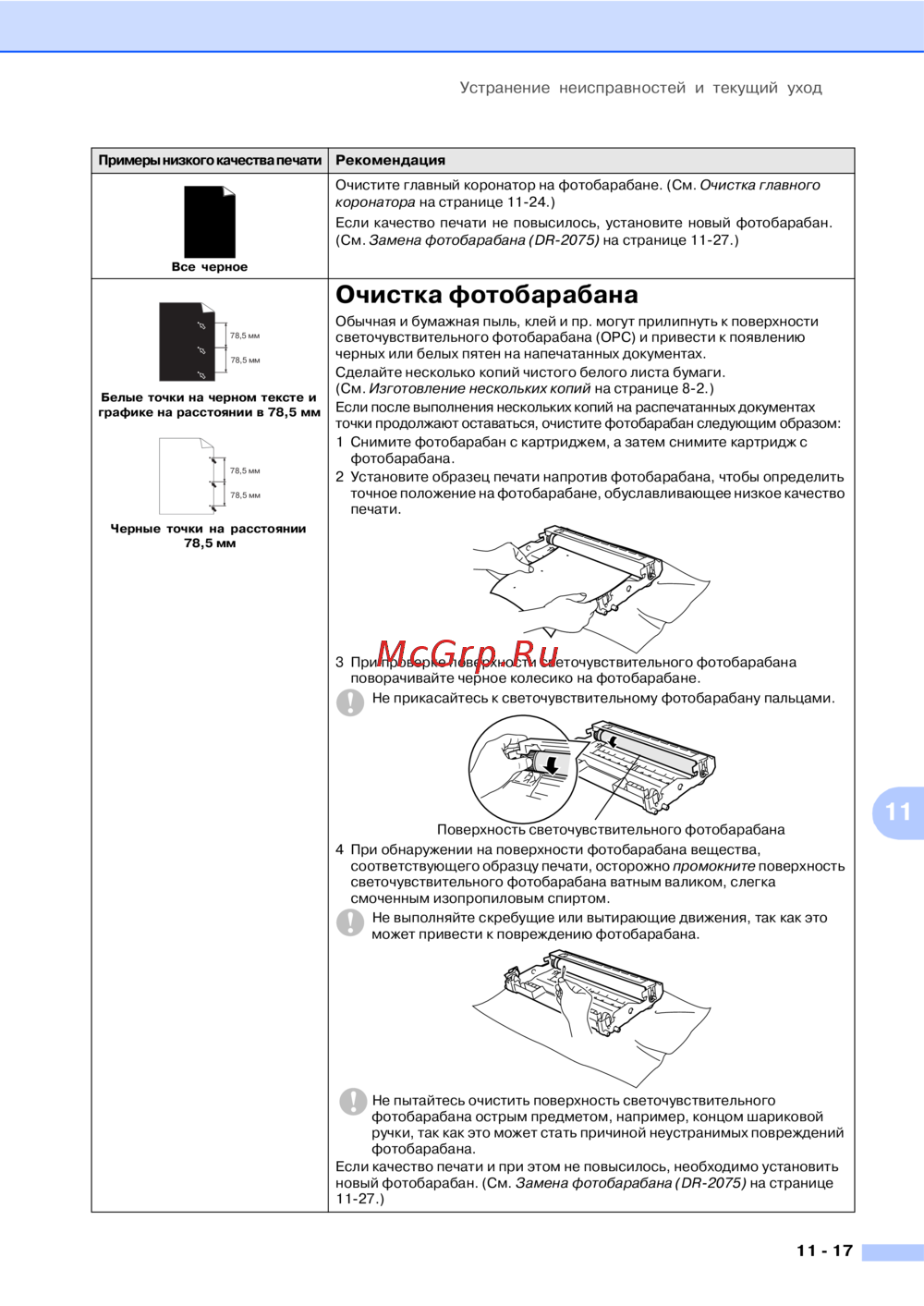 точки продолжают оставаться, очистите фотобарабан следующим образом: