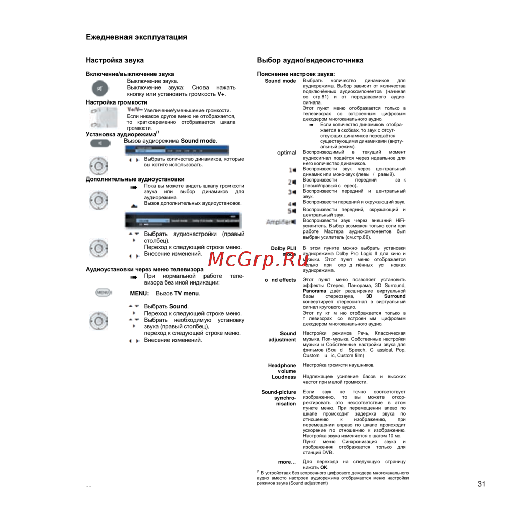 - Оборудование телевизора p.129