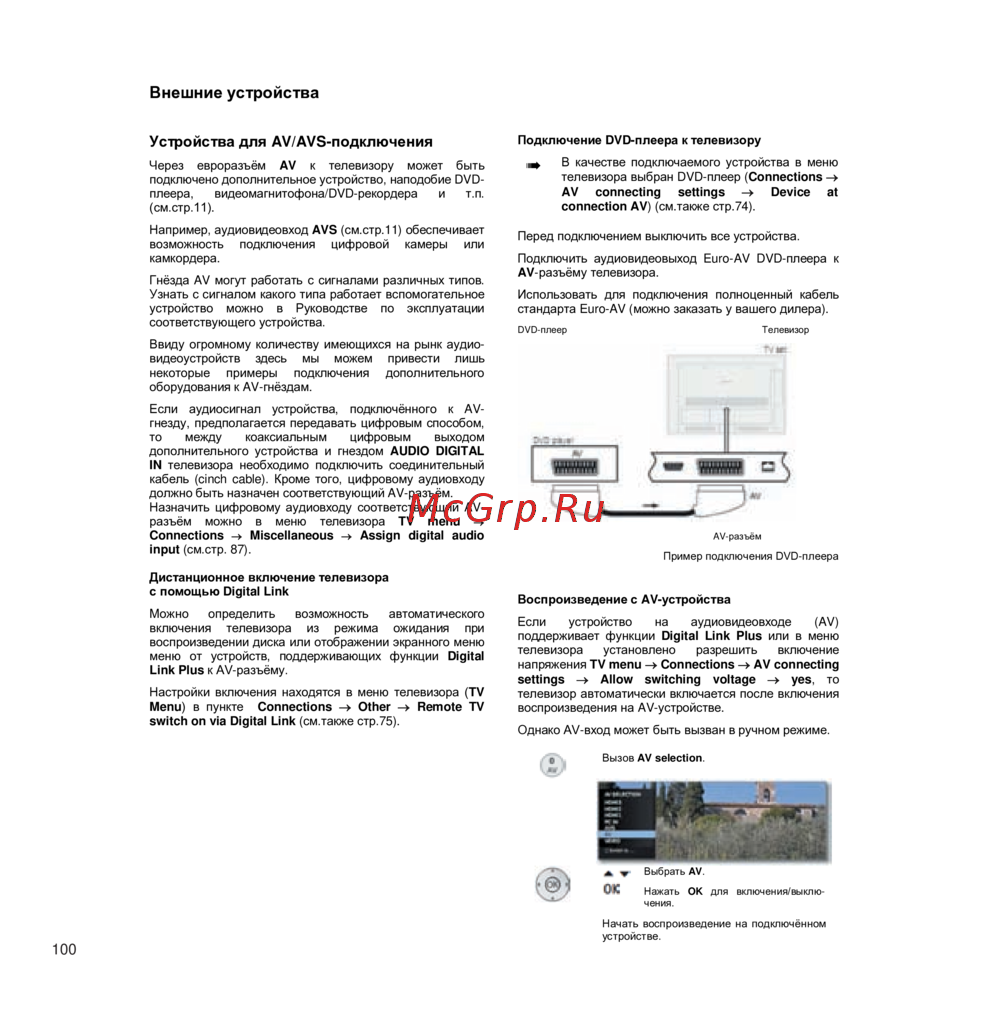 Например, аудиовидеовход AVS (см.стр.11) обеспечивает