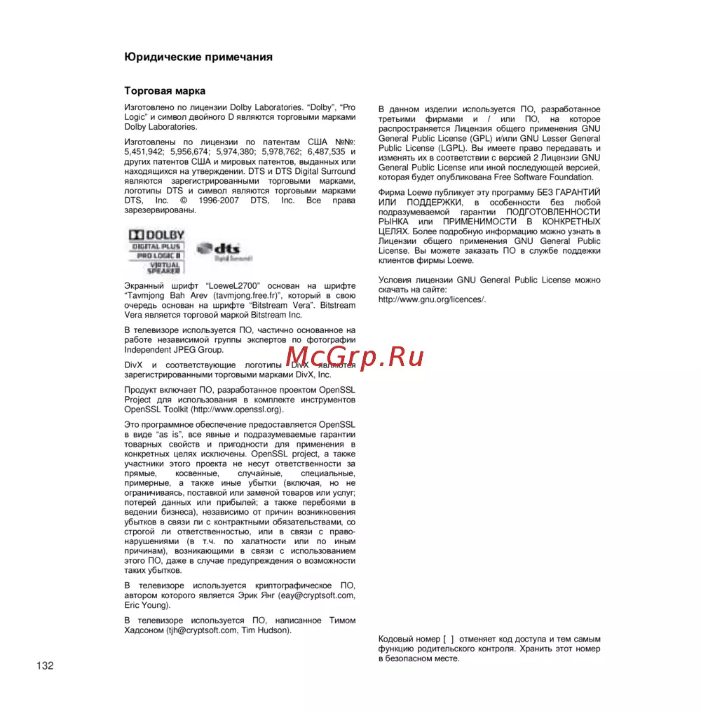 - Юридические примечания p.132
