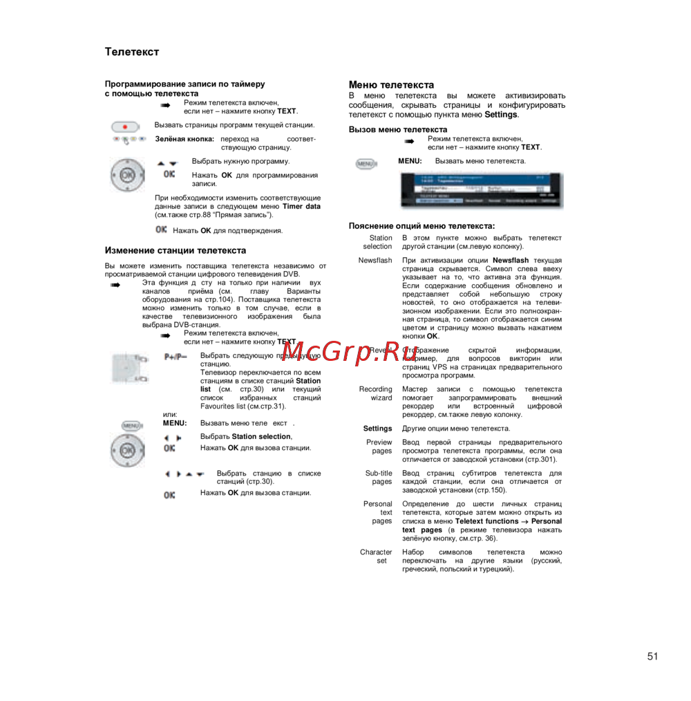 Инструкция по программированию записи по таймеру, изменению станции телетекста и настройке меню для комфортного просмотра и управления контентом.
