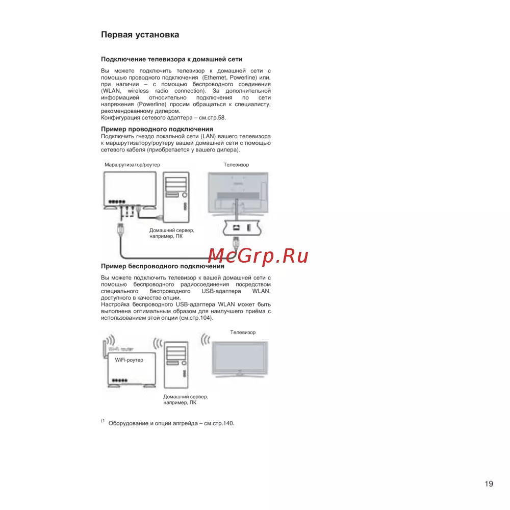помощью проводного подключения (Ethernet, Powerline) или,