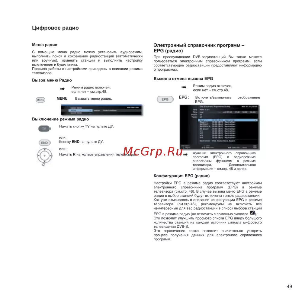 программ (EPG) в радиорежиме