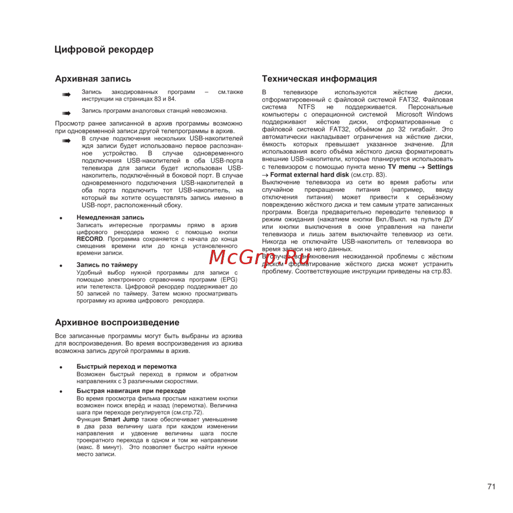 Format external hard disk (см.стр. 83).