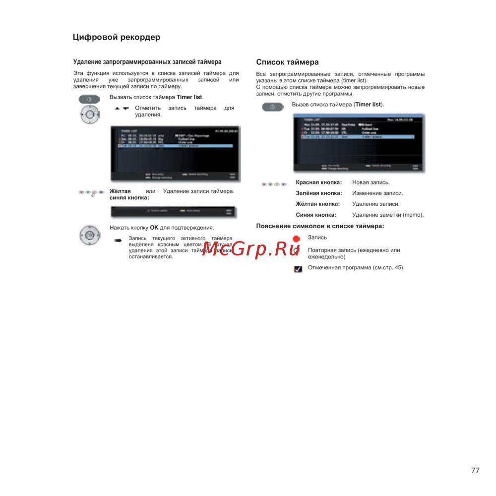 - Функции цветных кнопок в режиме телевизора p.2