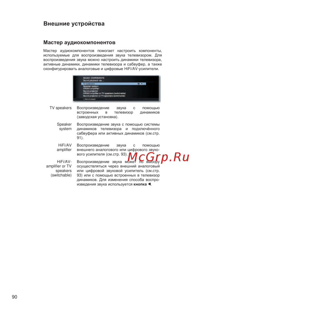L/R телевизора. Примеры подключения приведены на стр.92.