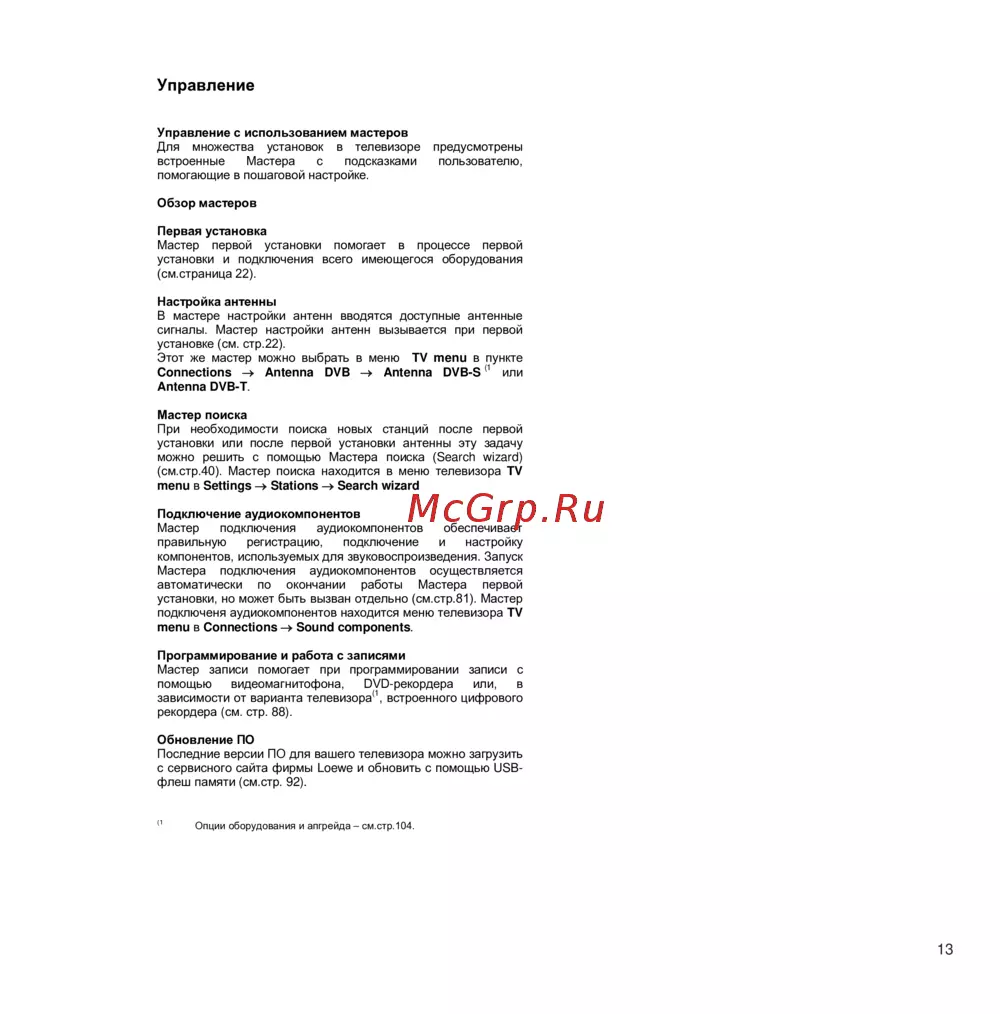 - Управление оборудованием loewe p.115