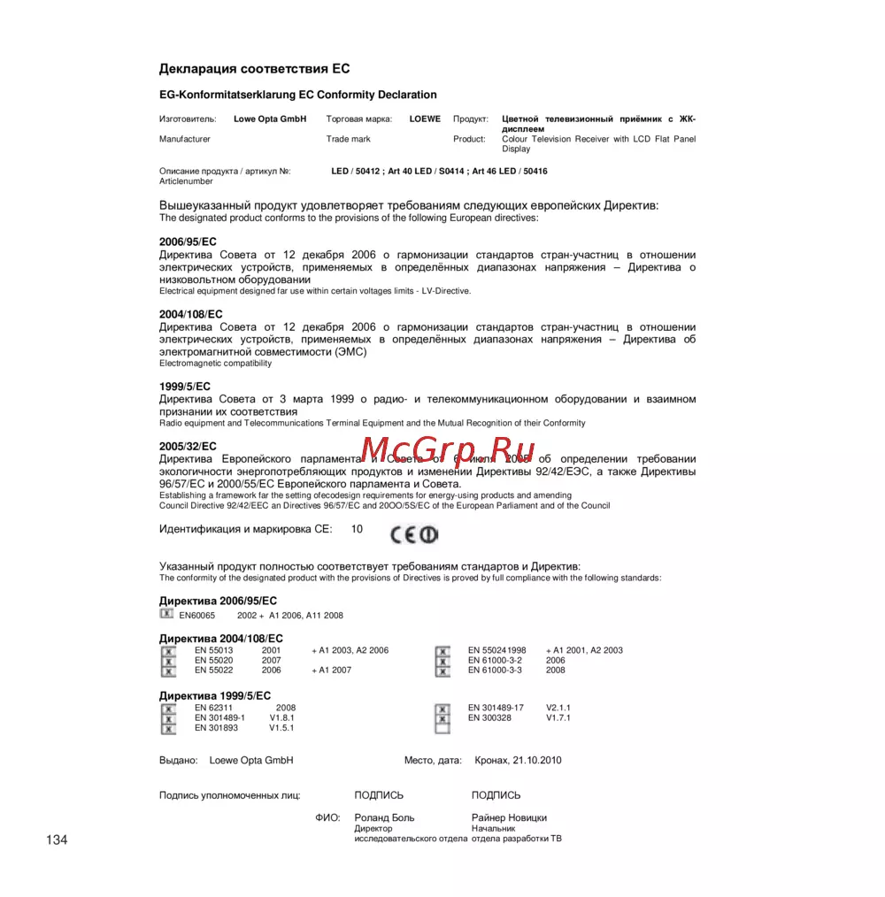 Loewe Art 37 50413W80 Black [134/142] Указанный продукт полностью соответствует требованиям стандартов и директив указанный продукт полностью соответствует требованиям стандартов и директив