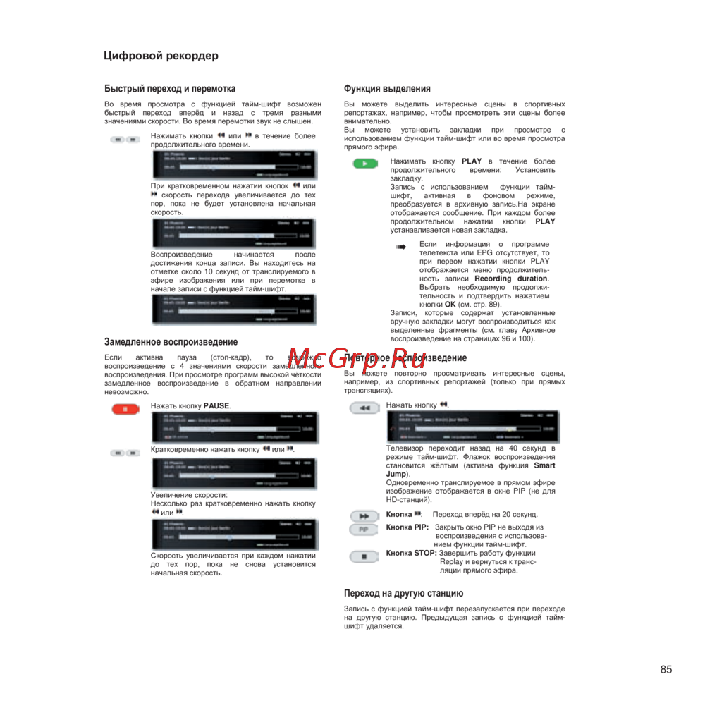 - Ранее записанные программы из архива цифровых записей dr archive на внешний рекордер с помощью функции таблицы таймера p.113