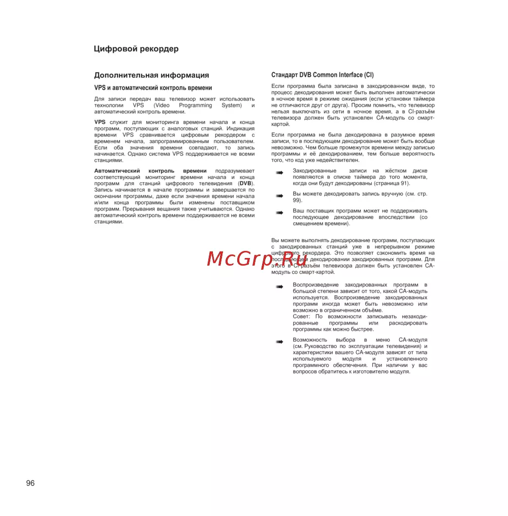 Узнайте о возможностях цифрового рекордера, включая технологии VPS и автоматического контроля времени для записи программ. Обеспечьте качественное декодирование и воспроизведение.