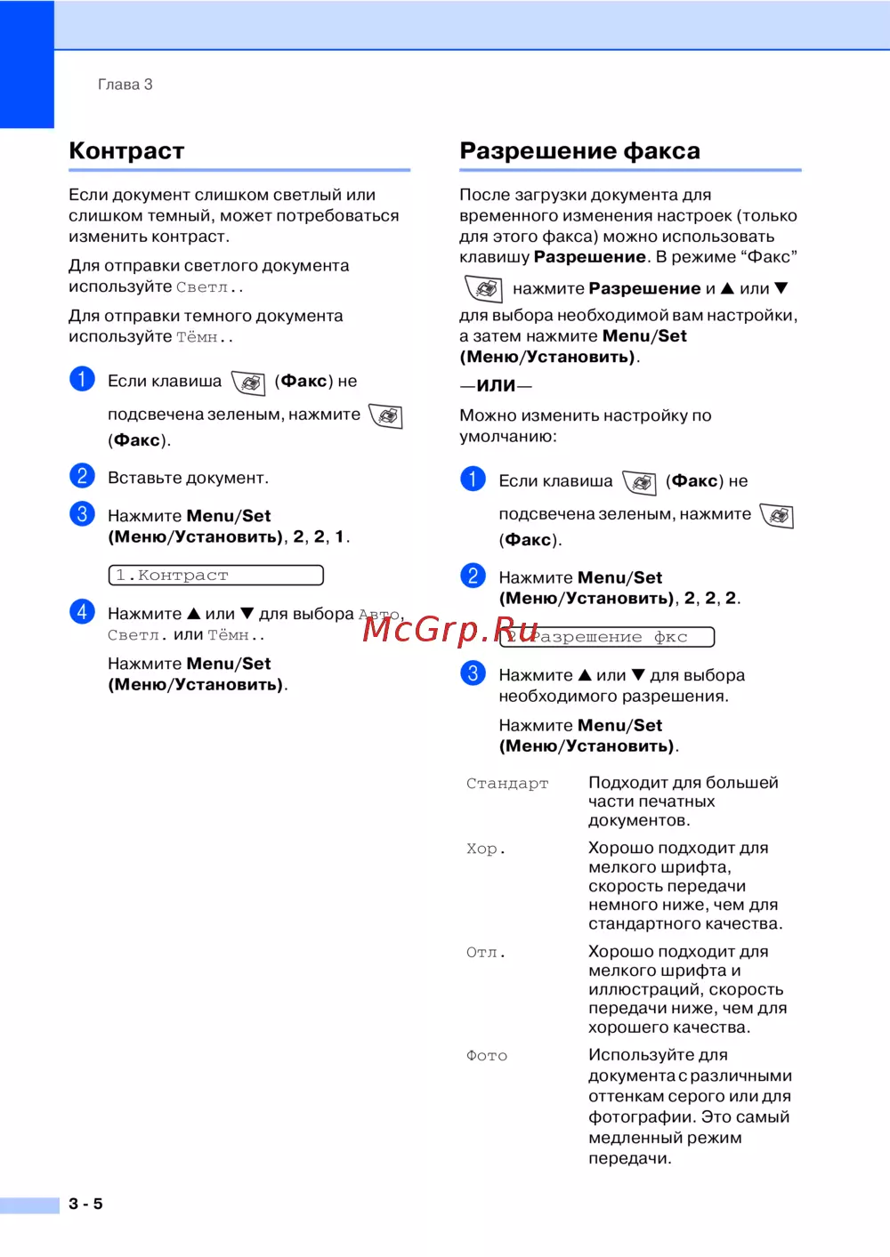 Brother Fax-2820 — настройки контраста и разрешения для факсов [43/147]