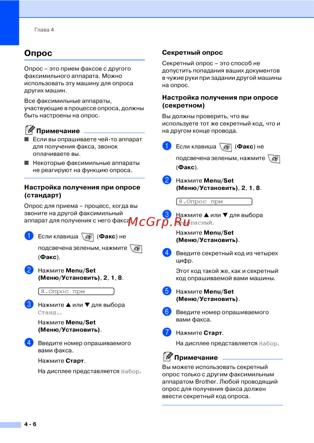 Brother Fax-2820 — настройка опроса факсимильных аппаратов: пошаговое руководство [57/147]