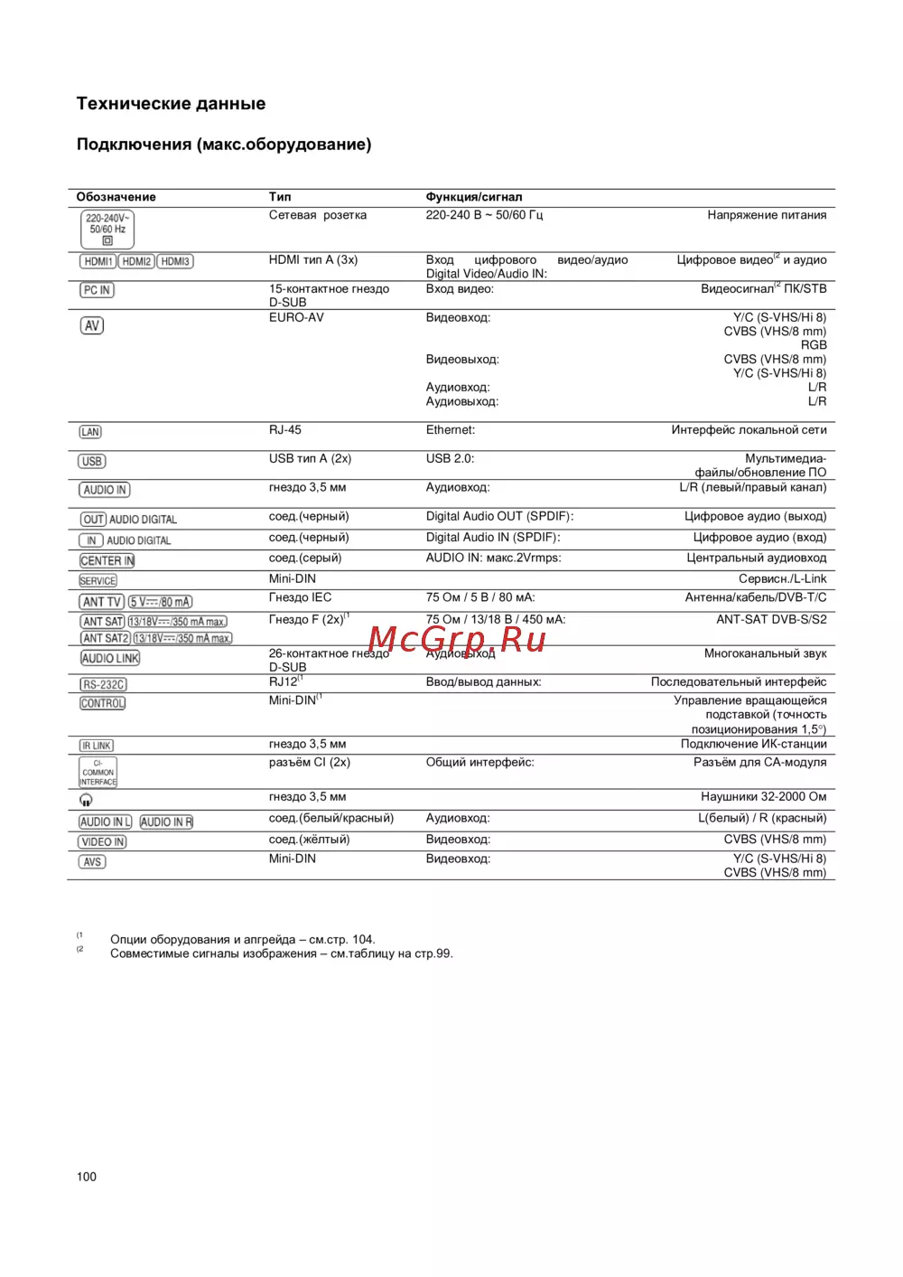 - Подключения макс оборудование p.100
