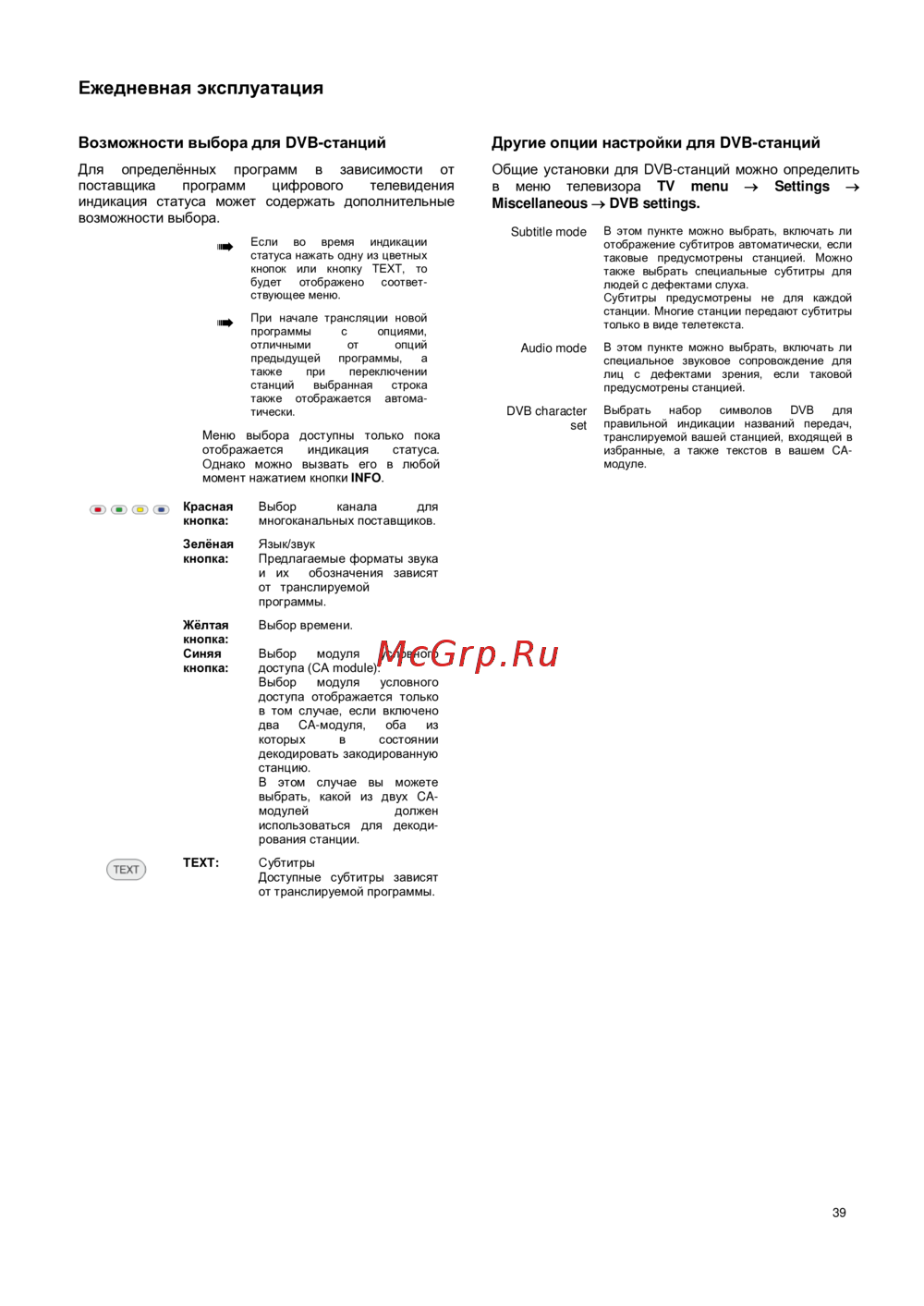 - Установка режима работы функции цветных кнопок в режиме радио p.2