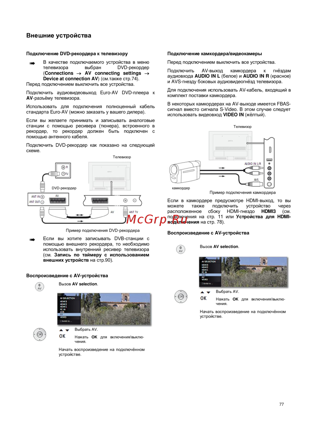 и AVS-гнезду боковых аудиовидеогнёзд телевизора.