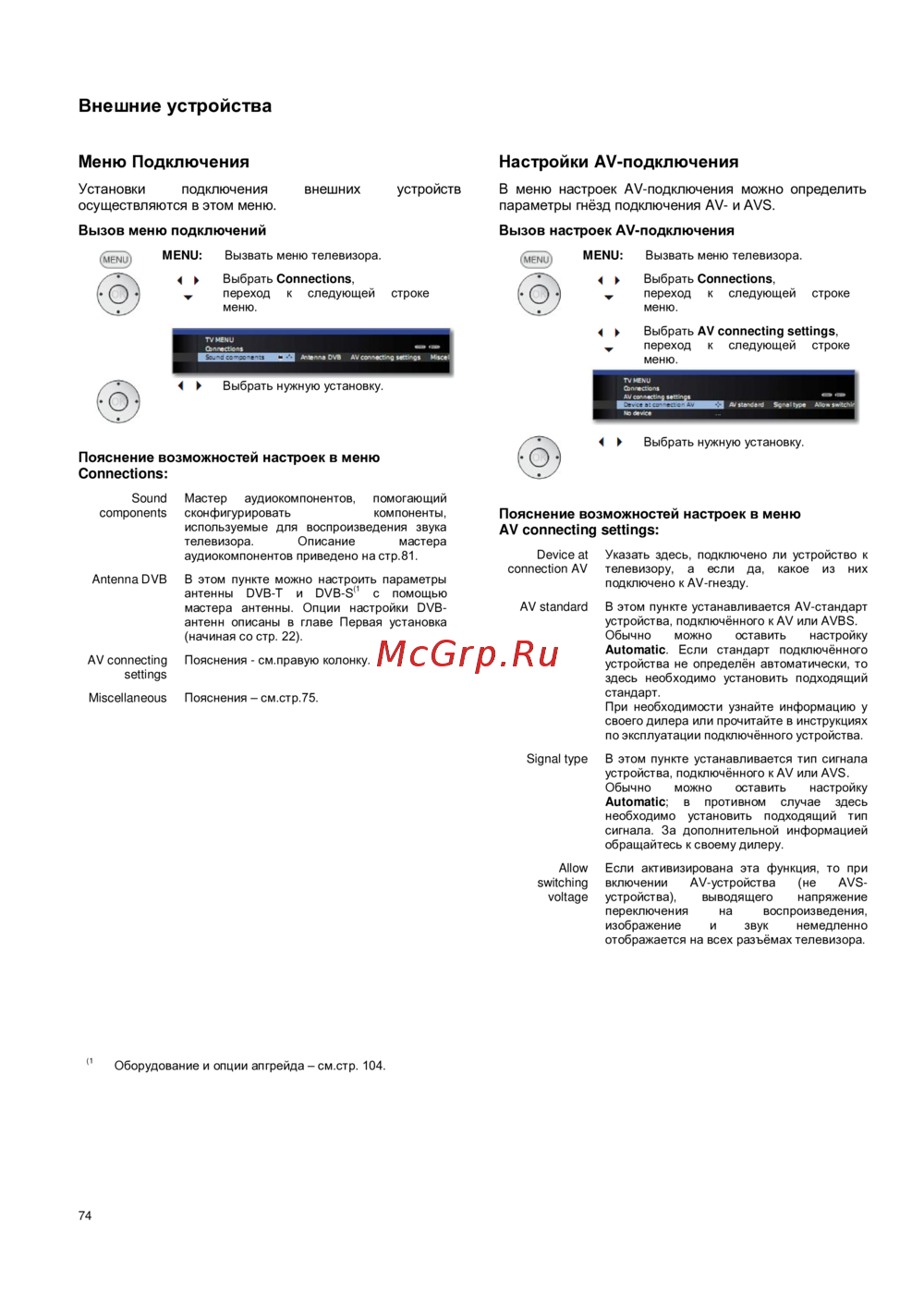 ![Loewe Connect 40 51409W82 Black [74/119] В меню настроек av подключения можно определить параметры гнёзд подключения av и avs](/views2/1065379/page74/bg4a.png)