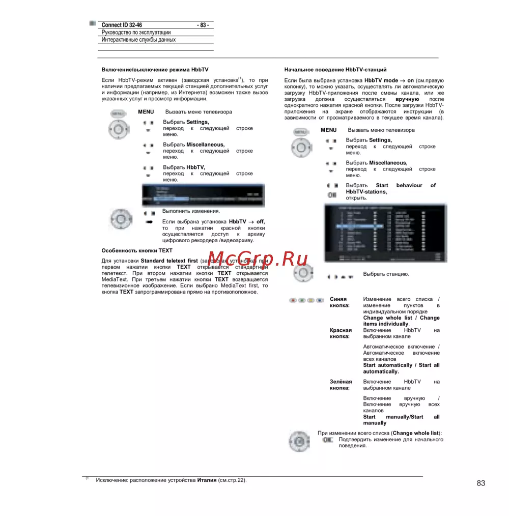 Узнайте, как включить и настроить режим HbbTV на вашем устройстве. Получите доступ к интерактивным услугам и настройкам телетекста с помощью простых шагов.
