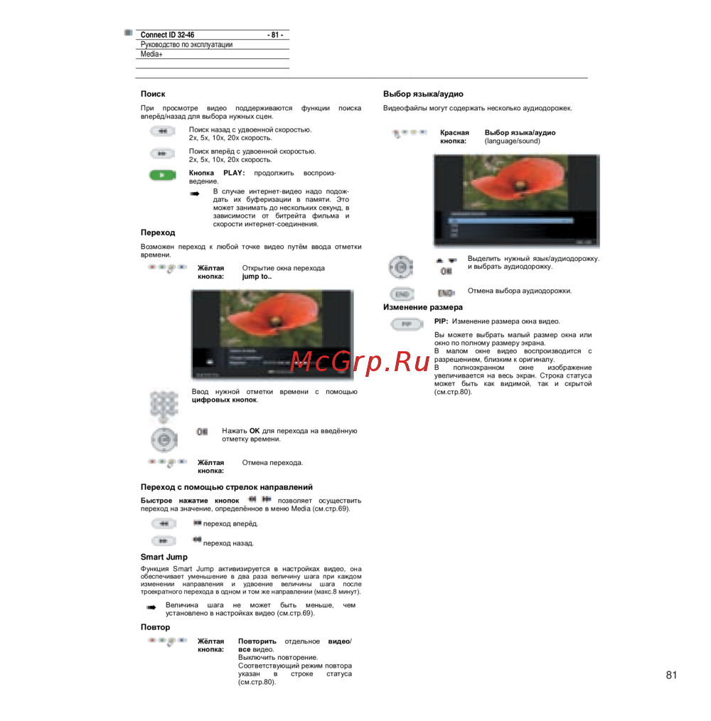 При просмотре видео поддерживаются функции поиска