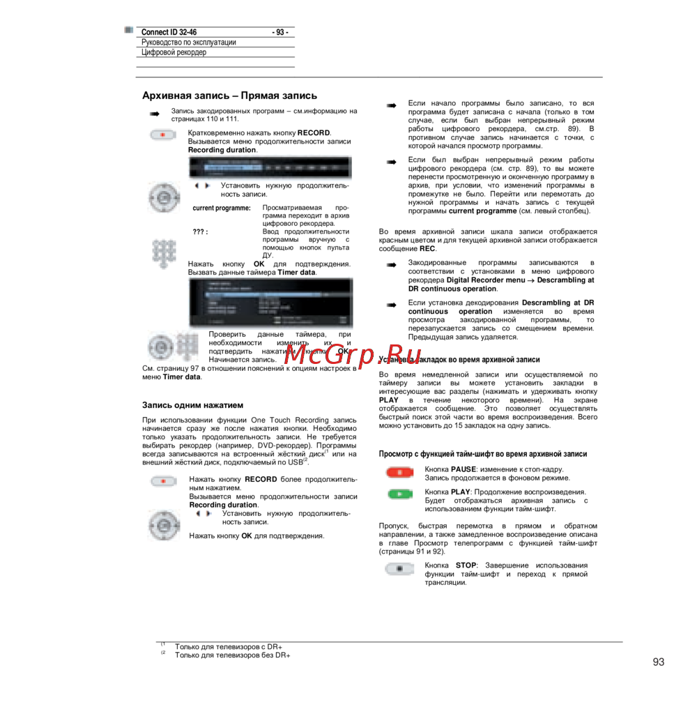 в главе Просмотр телепрограмм с функцией тайм-шифт