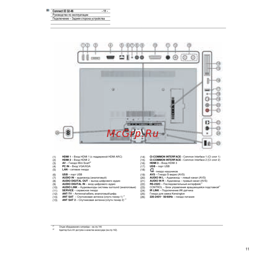 Адаптер Euro AV доступен в качестве аксессуара (см.стр.142).