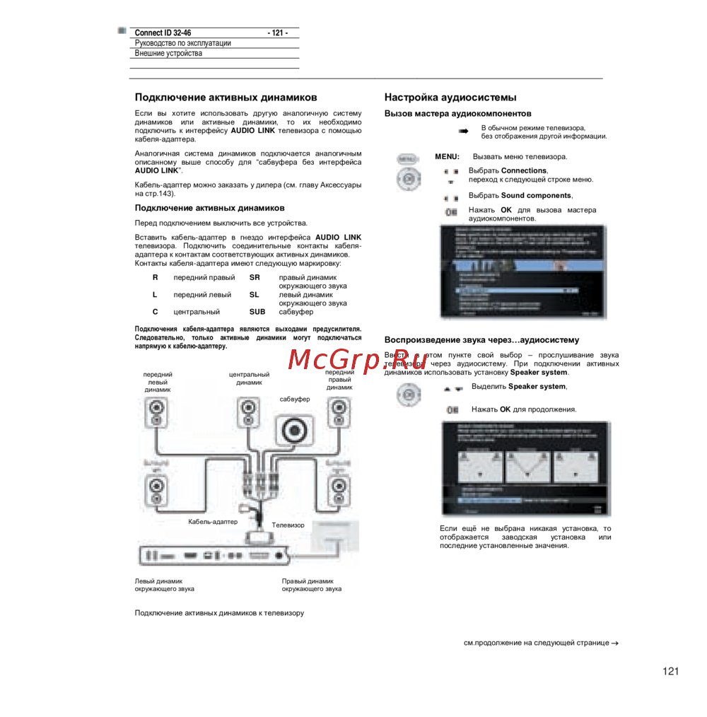 подключить к интерфейсу AUDIO LINK телевизора с помощью