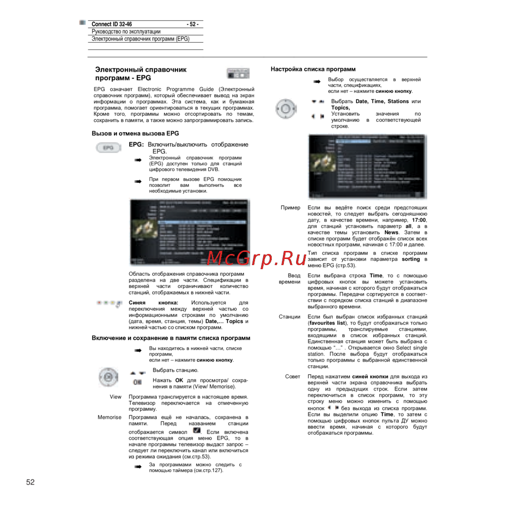 Узнайте, как использовать электронный справочник программ для цифрового телевидения. Настройте список программ, сортируйте по темам и сохраняйте в памяти.