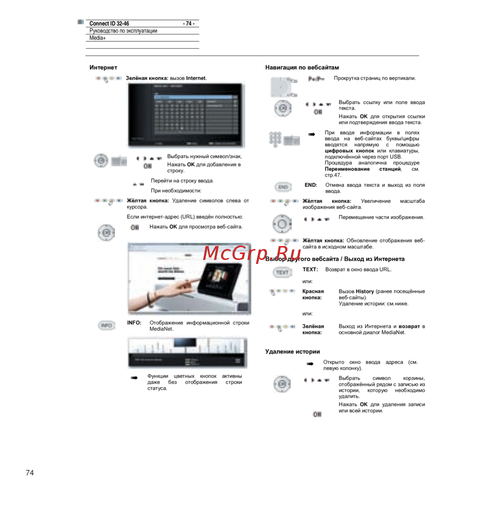 Узнайте, как использовать интернет-функции устройства, включая навигацию, ввод URL и управление историей посещений. Подробные инструкции и советы.