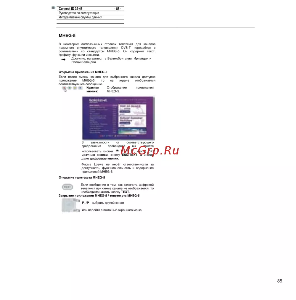 Loewe Connect ID 32 Orange+White HGL — руководство по использованию телетекста MHEG-5 для DVB-T [85/164]