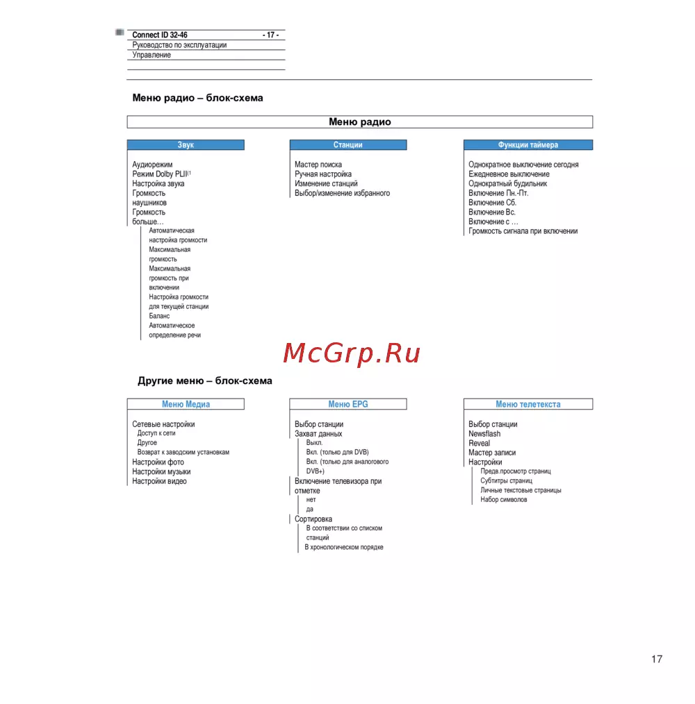 Меню радио – блок-схема