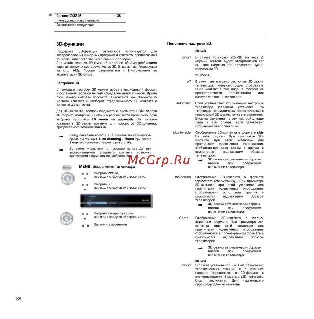 Loewe Connect ID 46 51464Y84 White+Black HGL — руководство по эксплуатации 3D-функций телевизора [38/164]