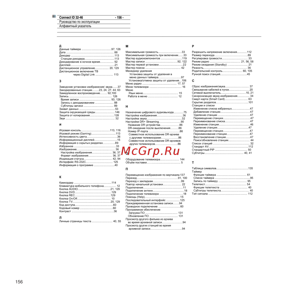 Изучите полное руководство по эксплуатации с алфавитным указателем функций и настроек. Узнайте о таймерах, декодерах, звуке и многом другом.
