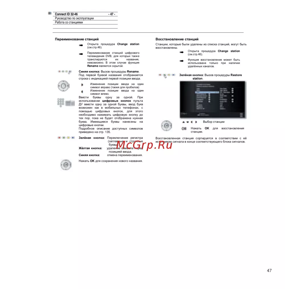 Узнайте, как переименовать и восстановить станции цифрового телевидения. Подробные инструкции по использованию кнопок и функций для управления станциями.