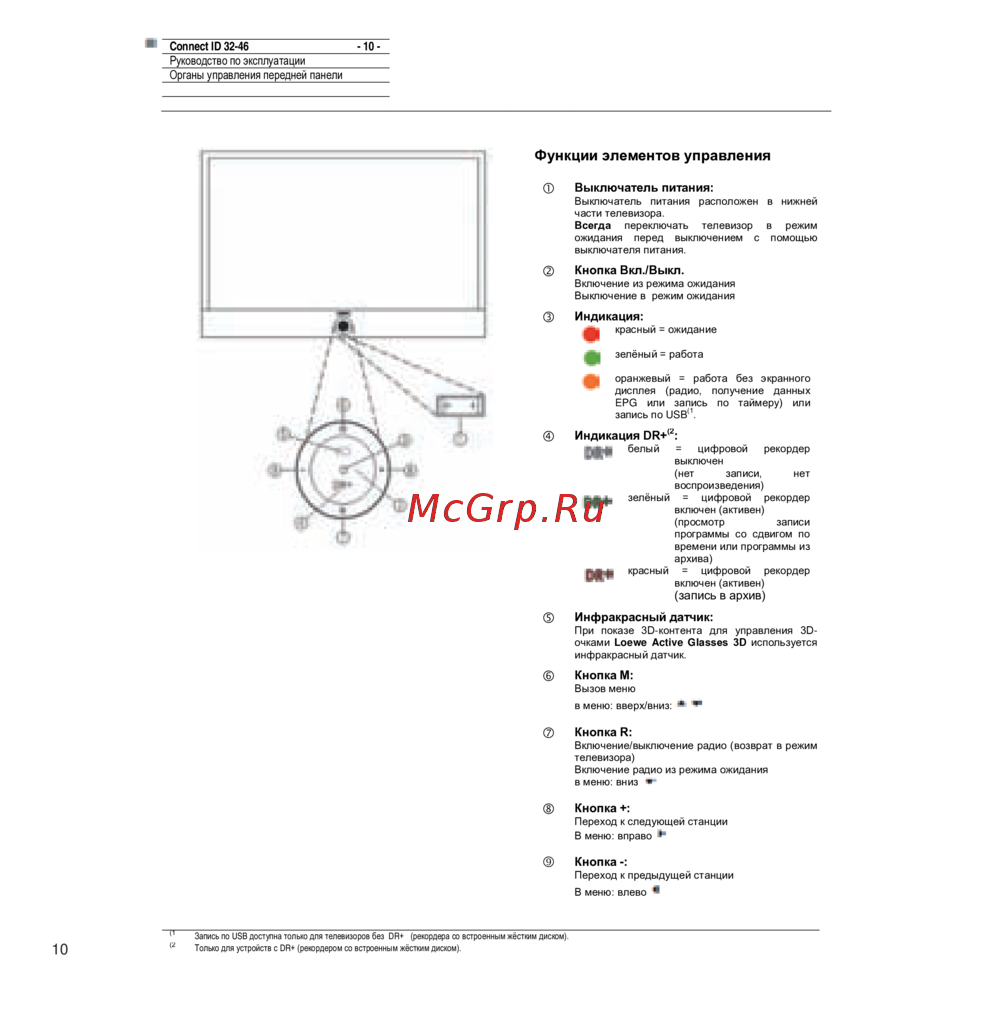 Loewe Connect ID 46 Orange+White HGL — руководство по эксплуатации: органы управления телевизора [10/164]