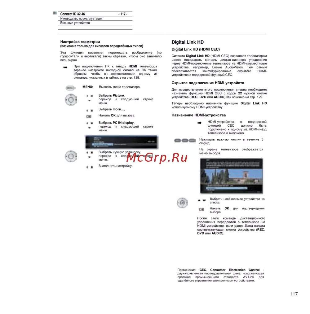 Loewe Connect ID 46 Orange+White HGL — руководство по настройке геометрии и HDMI-устройств [117/164]