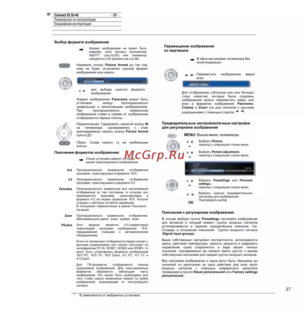 Узнайте, как правильно выбрать формат изображения на телевизоре. Подробные инструкции по настройке форматов 16:9, 4:3 и Panorama для оптимального просмотра.