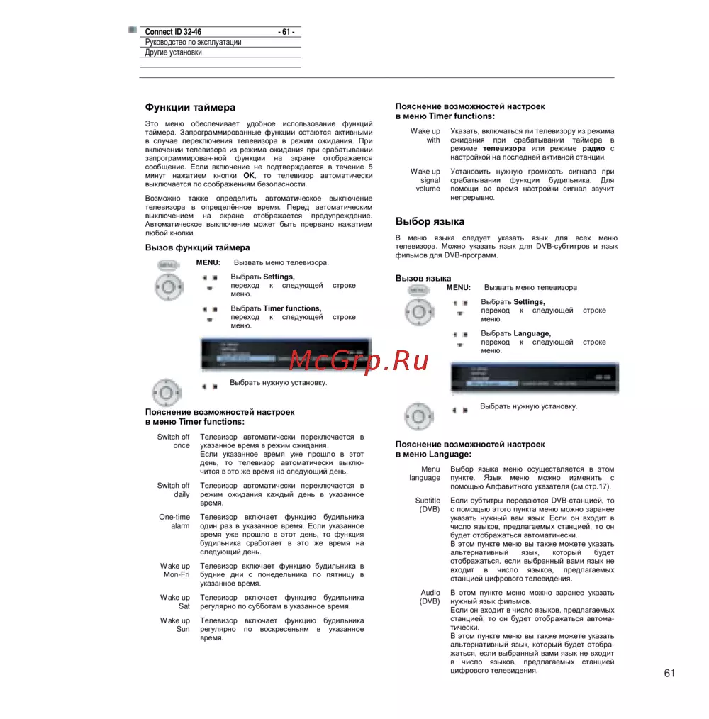 Loewe Connect ID 46 Orange+White HGL — руководство по эксплуатации функций таймера телевизора [61/164]